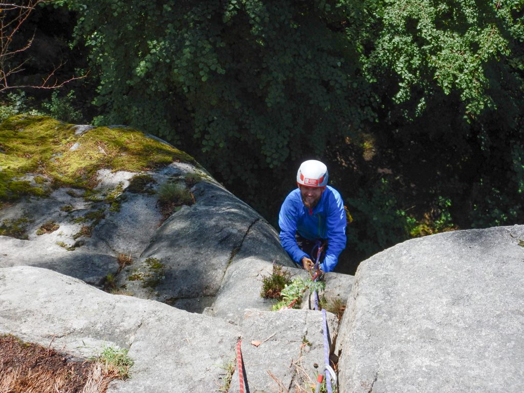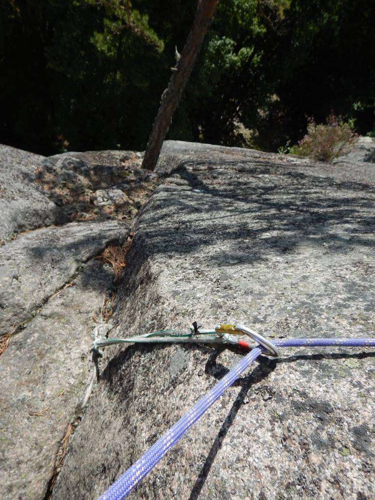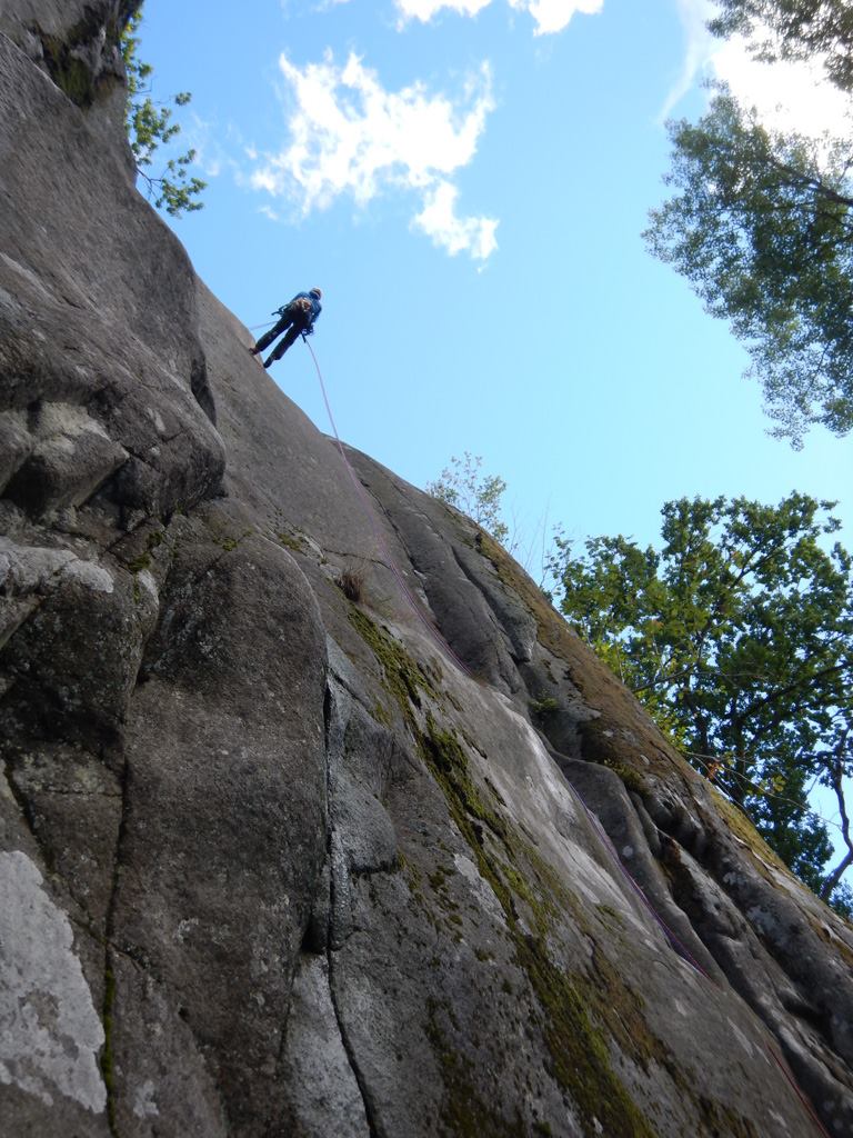 Micke tyckte det var lagom för mig att starta dagen med att leda Kristi Himmelsfärd. Det gick bra även om den mentala anspänningen var något hög, det var ett tag sedan vi aidklättrade senast. Tydligen finns det också lite mer att ta av hos Kärrlander för även om det var nödigt mellan varven så klarade jag mig till toppen med kalsongerna i fullgott skick. Efter lite fika och väderomslag var det dags för friktionsskorna och Micke tog taktpinnen och drog iväg mot Anders förfall. En trevlig men kanske lite underlig led, inte bara för att vi i ren klätterglädje missade slutet på leden och fortsatte till jag vet inte riktigt var. Ner kom vi i alla fall och det är ju huvudsaken.