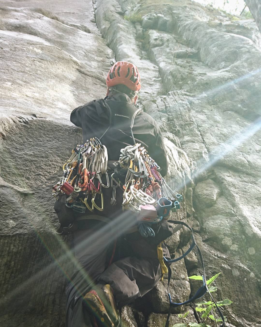 Tänka sig, det blev en dag i dag också. En dag på Simonsberget that is! Den andre av två under en och samma vecka, ingen dålig avslutning på semestern. Dagen startade med +11 grader och ösregn så det var bara att packa aidstegar och skaljacka, klättra hade vi bestämt oss för att göra och då kan man inte låta en så futtig sak som väder lägga hinder i vägen. Som en vis man jag känner sa: -Det finns inga dåliga väder, bara dåliga människor.