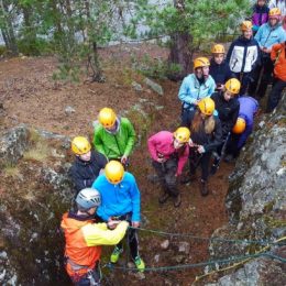 Igår var det dags för Gripsholmsskolans 8’or att testa sin via ferratautrustning inför höstens bestigning av Kebnekaise. Det blev en liten enkel klätterpassage också, jag kunde inte låta bli och det stämmer ju med vad dom kommer att få möta sedan. Vi hade tur med vädret och fick regn och rusk. Nu fick flera klart för sig vad som händer om man envisas med trendiga gympadojor och bomullskläder. Learning the hard way! Själv fick jag med mig dryga 300 meter blöta rep och annan utrustning hem som ska torkas. Jag ligger inte på plus hos lilla frun just nu.